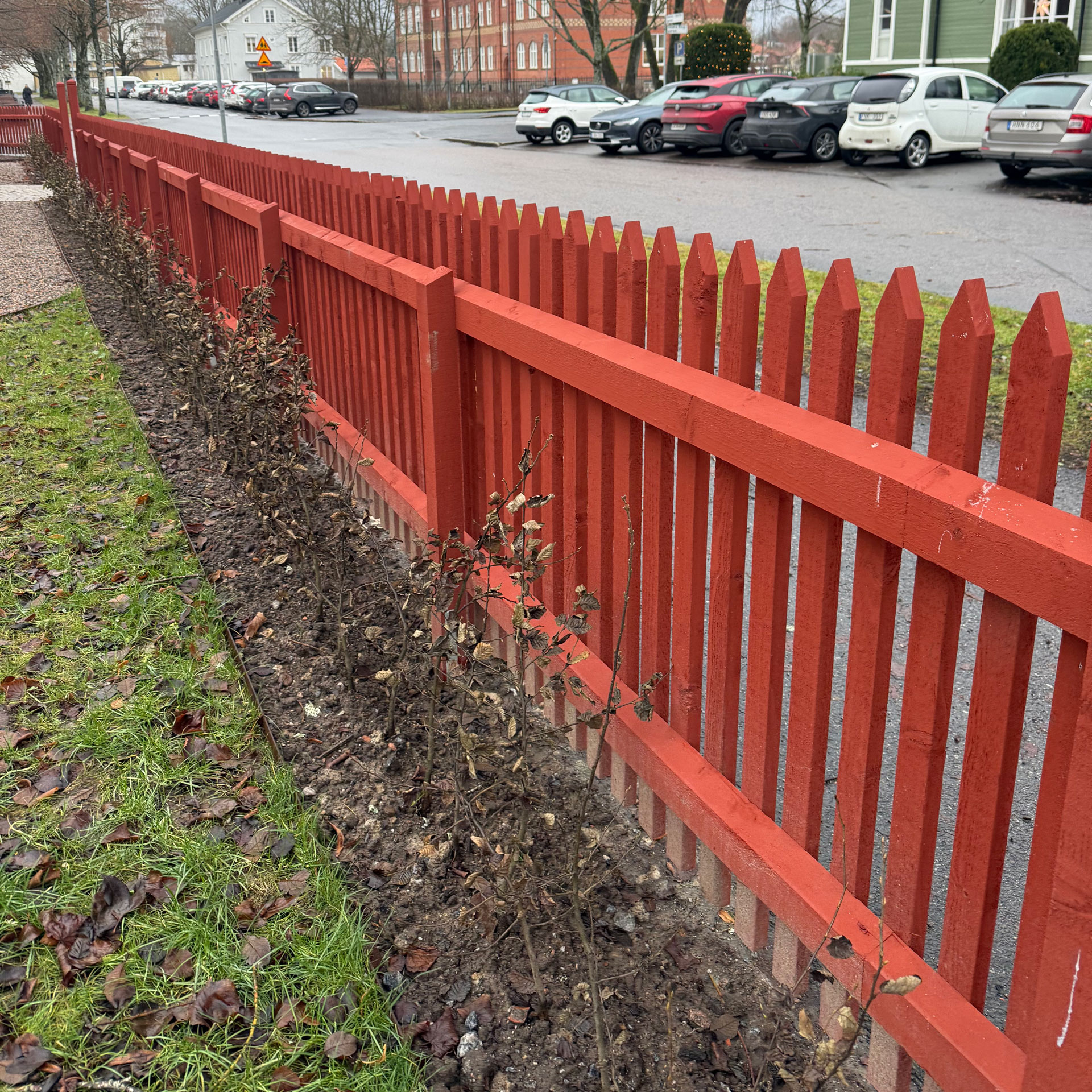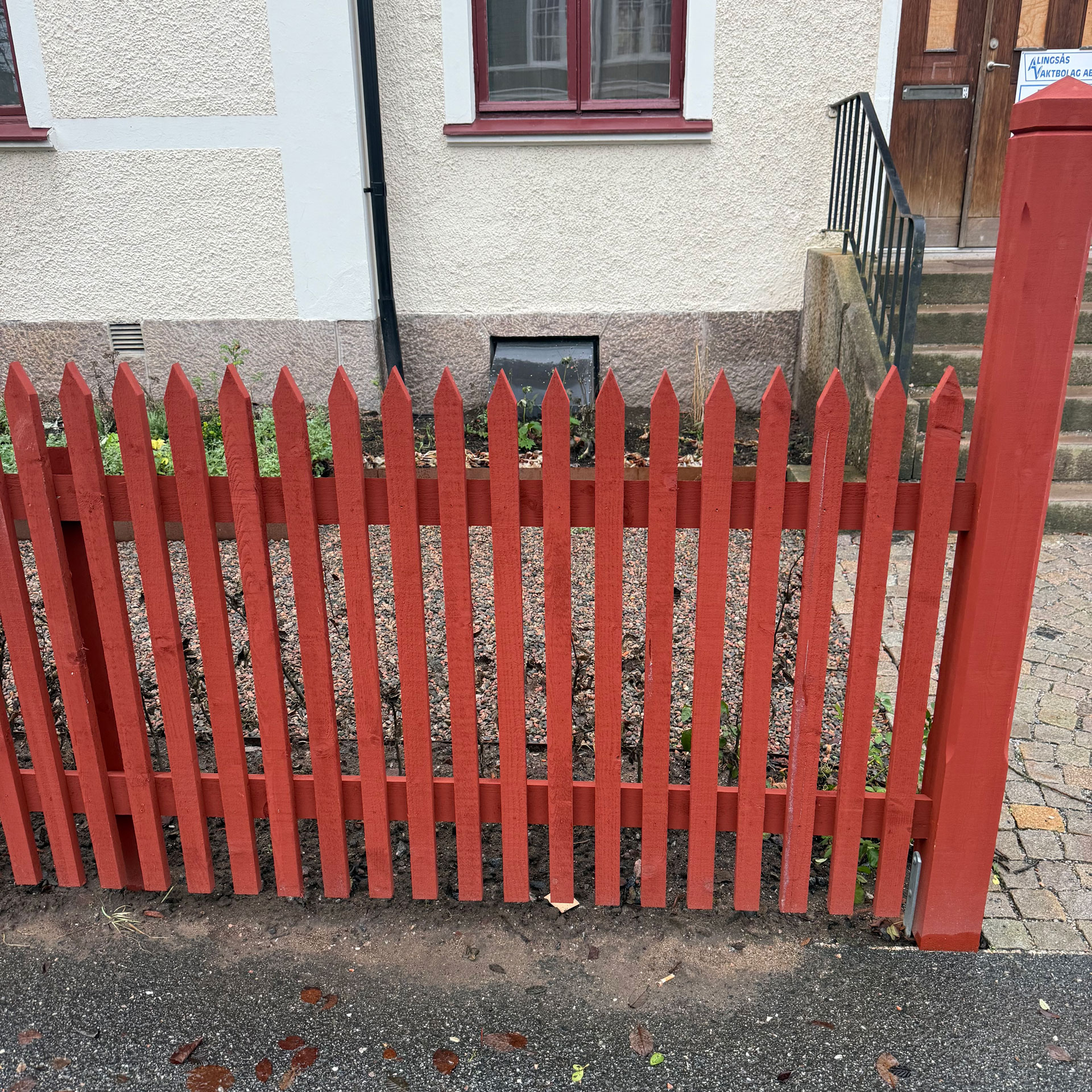 Staketet är målat med äkta Falu Rödfärg, originalet sedan 1764. Den enda slamfärgen med pigment från Falu Gruva, som ger färgen den där svårslagna kombinationen av matthet och naturlig lyster. Och som dessutom låter träet i ditt staket andas och må bra.